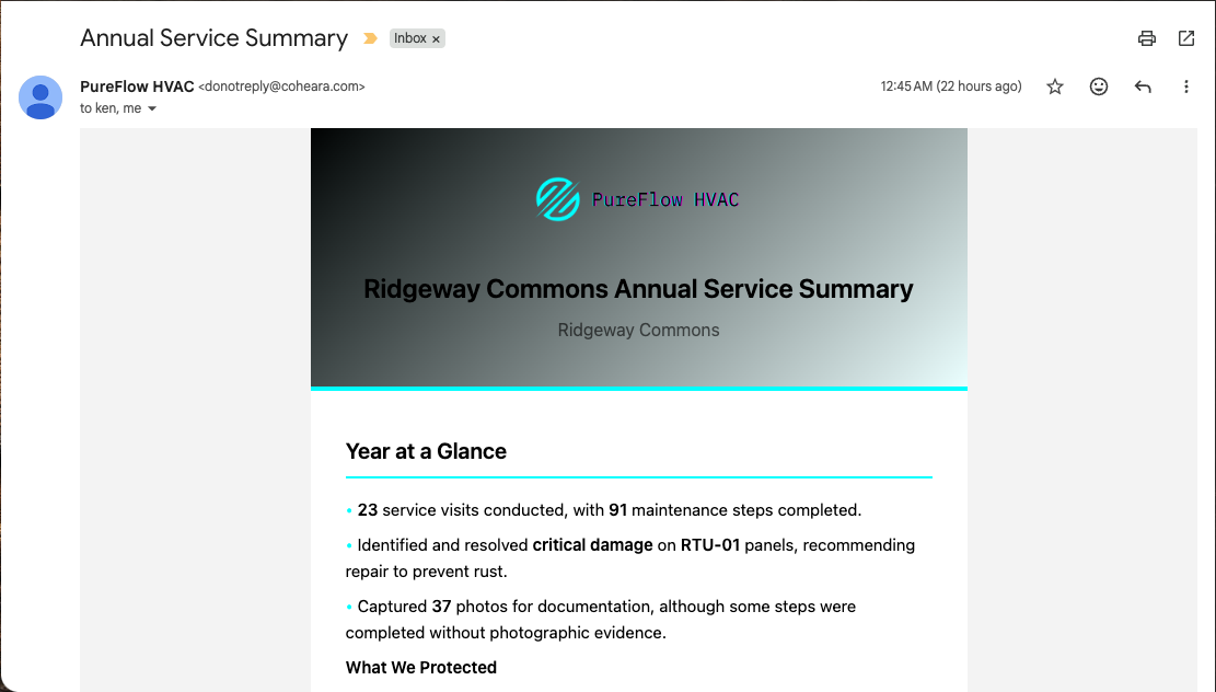Show proof of what was checked, fixed, or prevented after every visit.